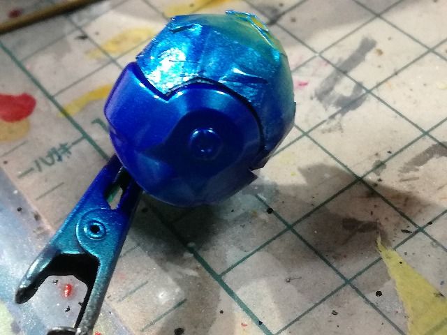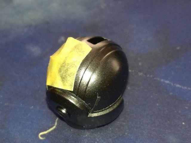 厳かな気分のまま部屋を探し出してもパーツが見つからないんで、手持ちのジャンクパーツから運良くペルセウスの頭部を発見!したんですがね・・・また合わせ目消しからやり直してメタリック色を吹き付ける作業が始まります。