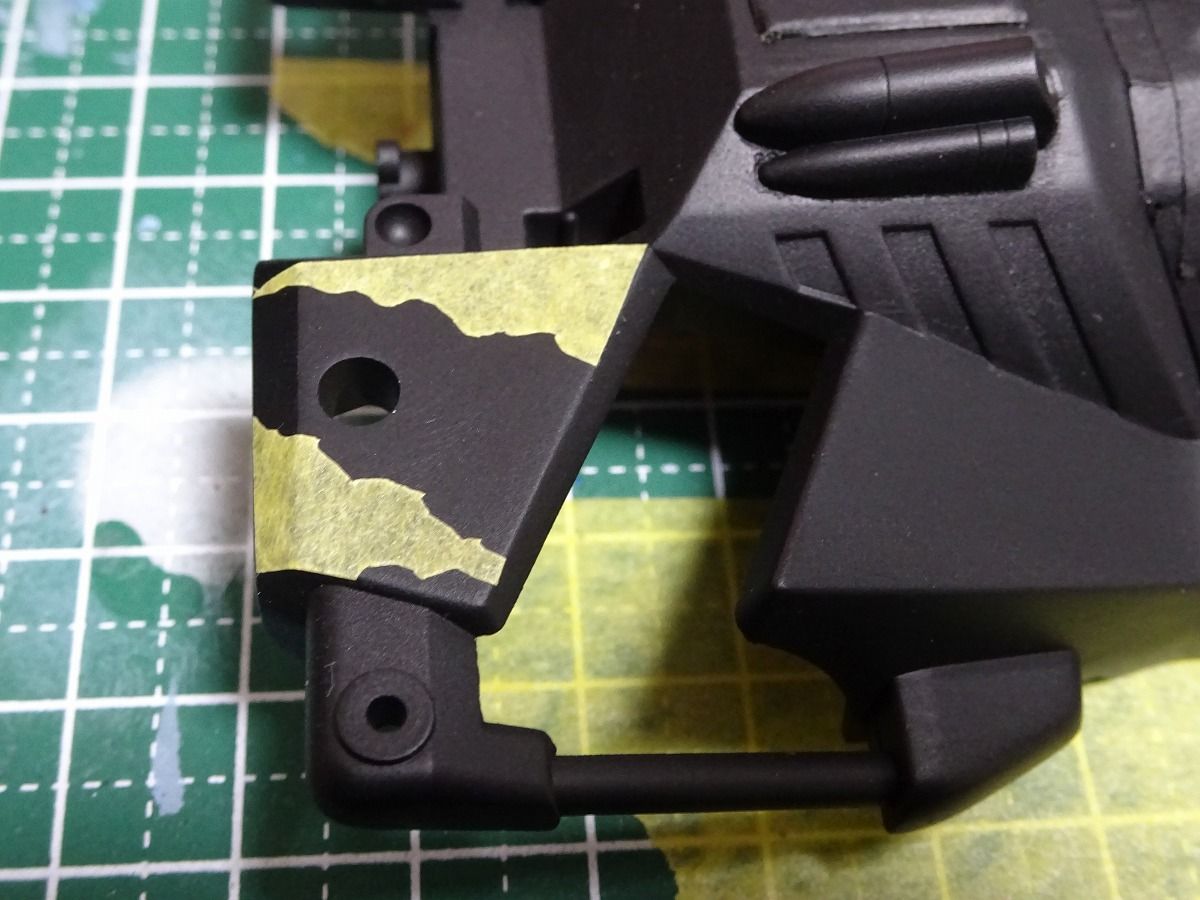 その後シルバーで運転席と3カ所の金属プレート部分を塗装してマスキングしておきます。