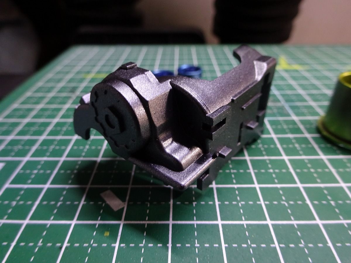 この部分のみつや消しにしたのは、この部分もシルバーで塗るとちょっとくどいかな?と思ったためです。ボディの方を見てもらえば分かると思いますが、普通に塗ったら恐らくボディの艶に食われるだろうな~と。