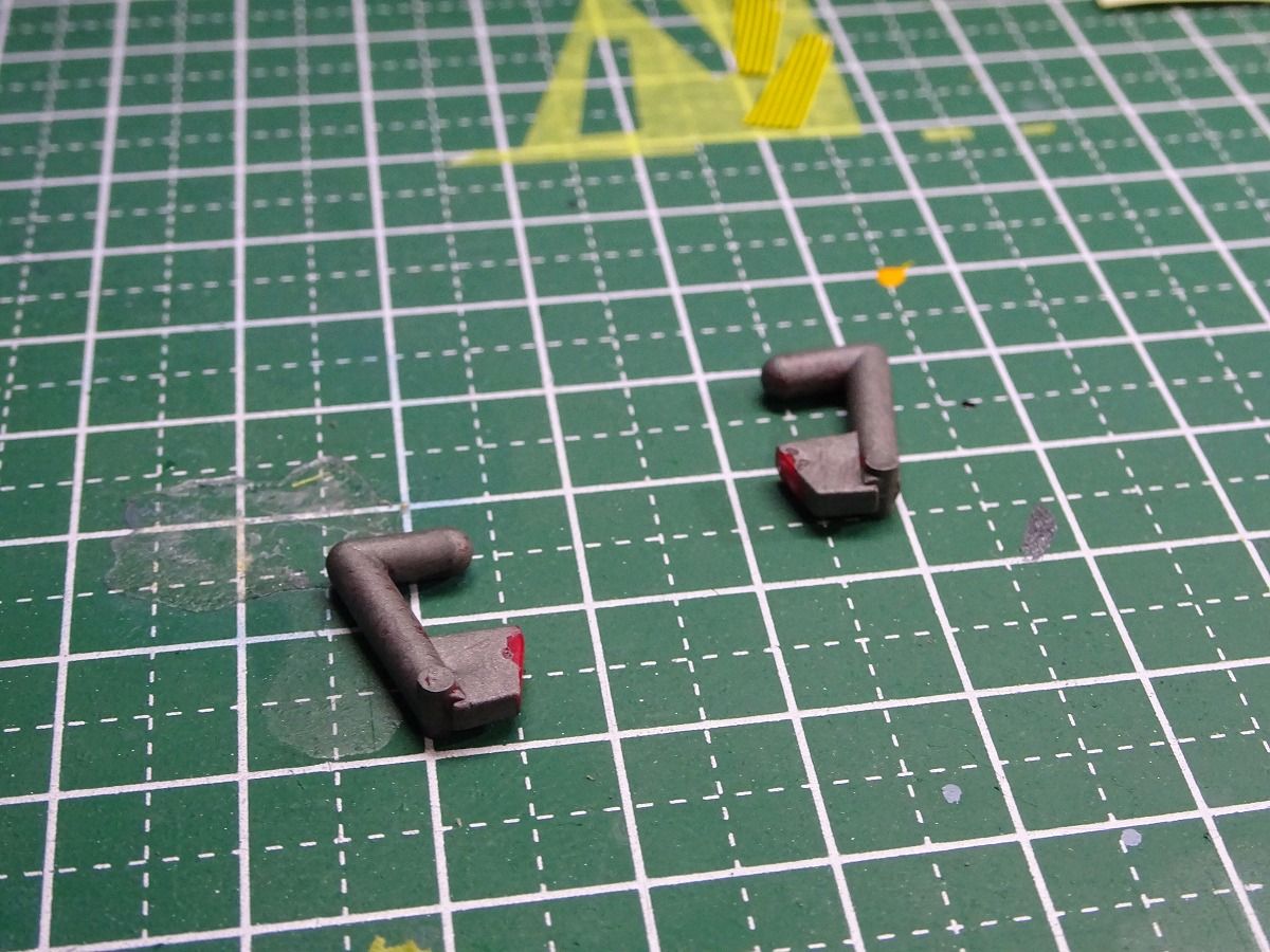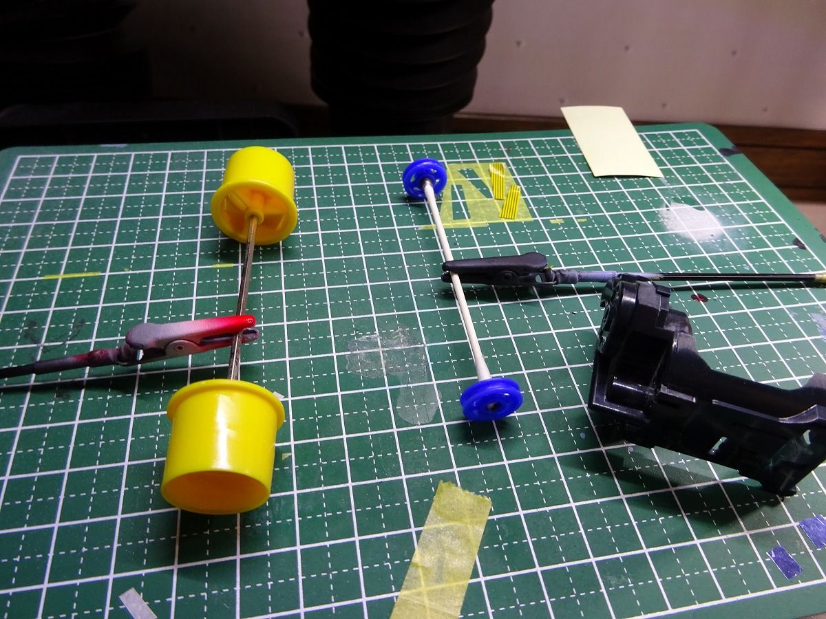 ホイールやローラー、モーターボックス、あと画像はどこかにやってしまいましたが、後ろに付けるボディとシャーシを繋ぐパッチンを塗り分けます。