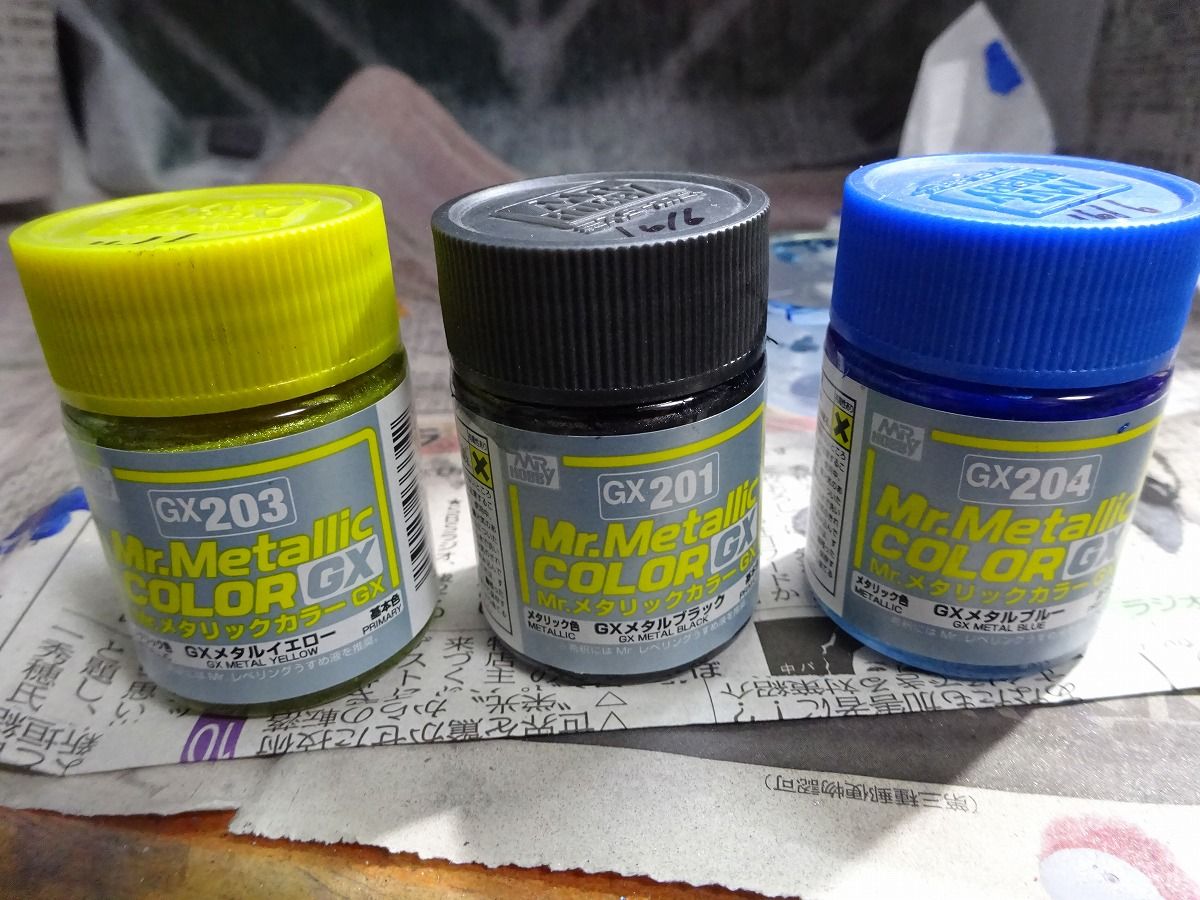 事前に黒サフは吹いておいたのでその上からメタルブルーを吹いたのがこれです。