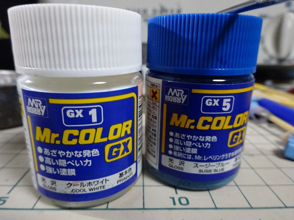 下地色が塗り終わったので、今回はメインの青を吹きます。